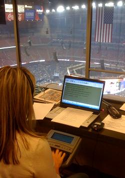 Let's not forget about the arts! A copy of the script for the play is received ahead of the scheduled play date. The realtime captioner enters and formats the play into the realtime software on a laptop. When the realtime captioner is at the location of the play, the computer with the prescripted play loaded on it is connected to an LED sign. With the file of the play open, the text of the play is ready to be sent to the LED sign by the realtime captioner line-by-line simultaneously as the speakers perform the play. Realtime captioning of theater is becoming increasingly popular as consumers realize how fulfilling cultural events can be when they are able to read the text and fully understand the play!